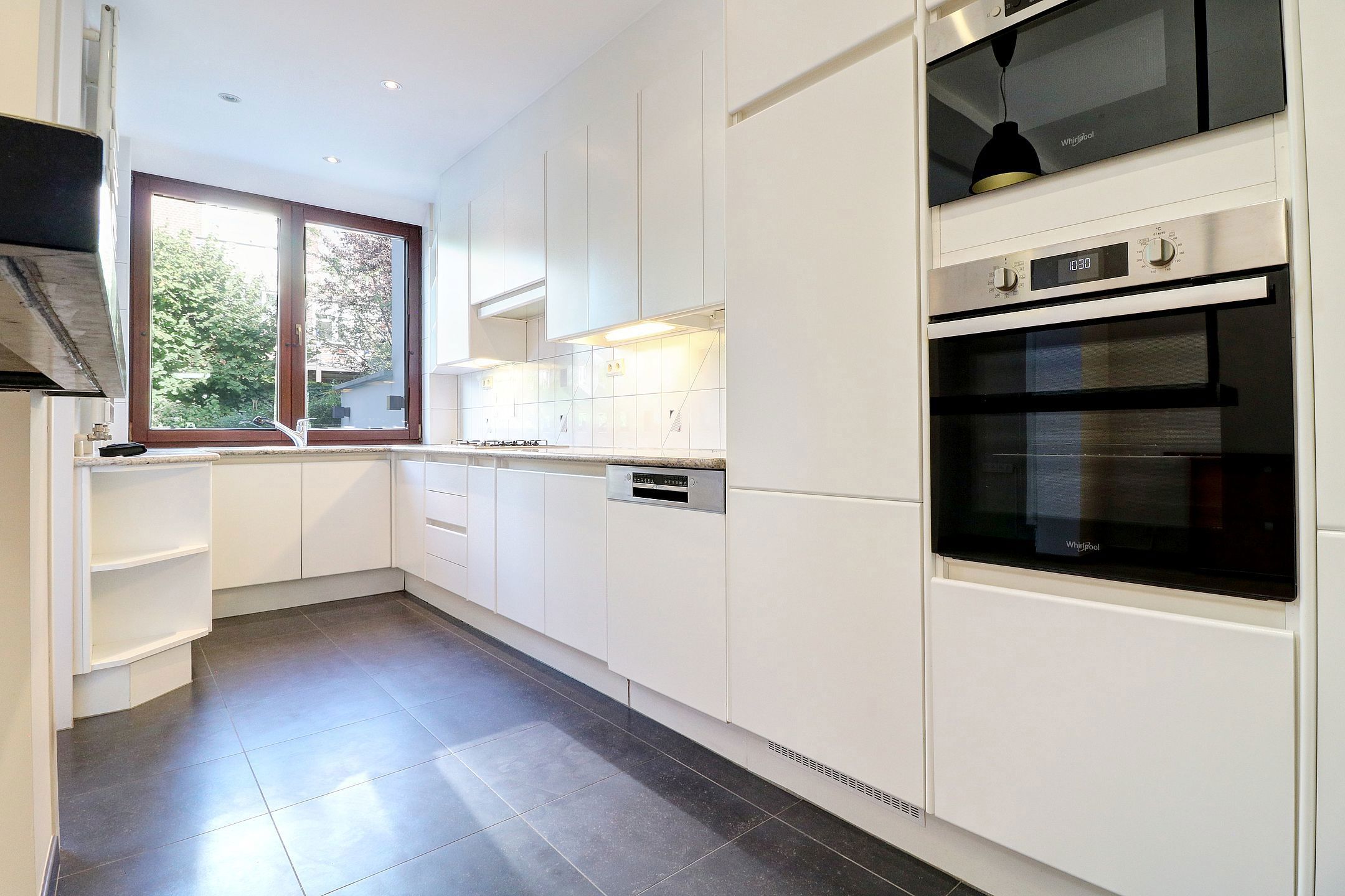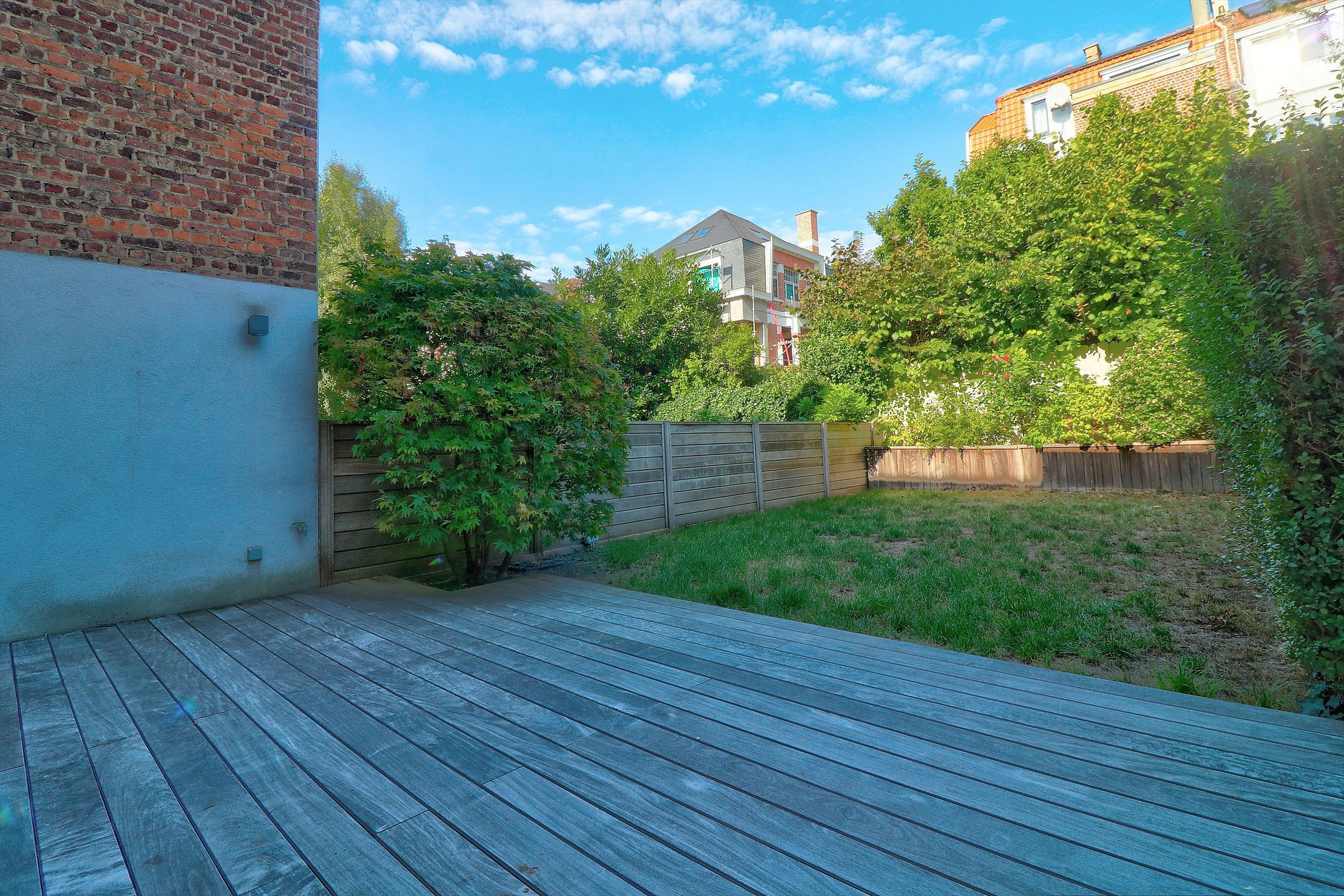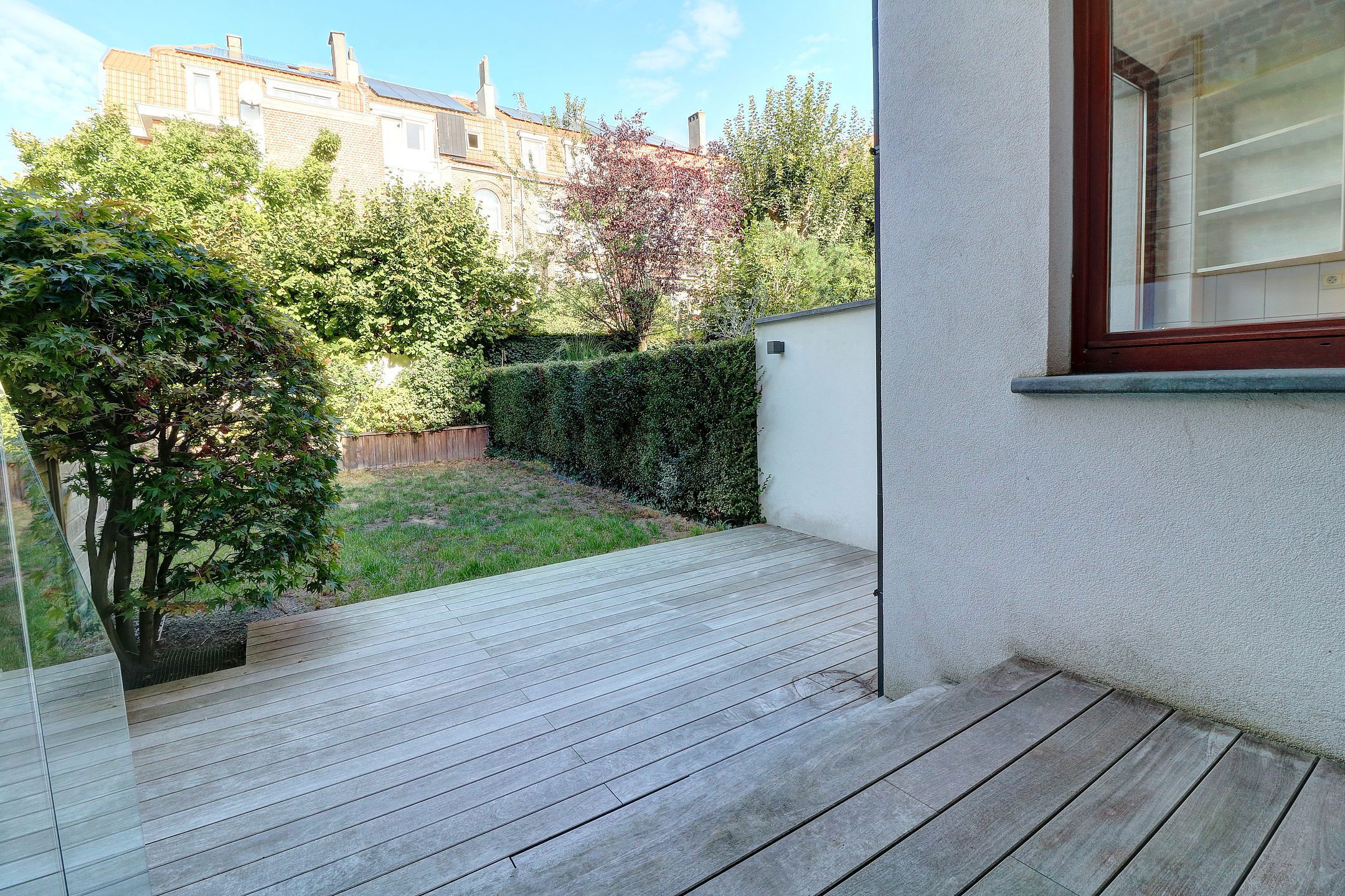 - 1 hall de nuit de ±14m², 2 chambres en parquet de ±18m² chacune, 1 salle de douche carrelée de ±9m² avec une grande douche italienne, 1 WC séparé