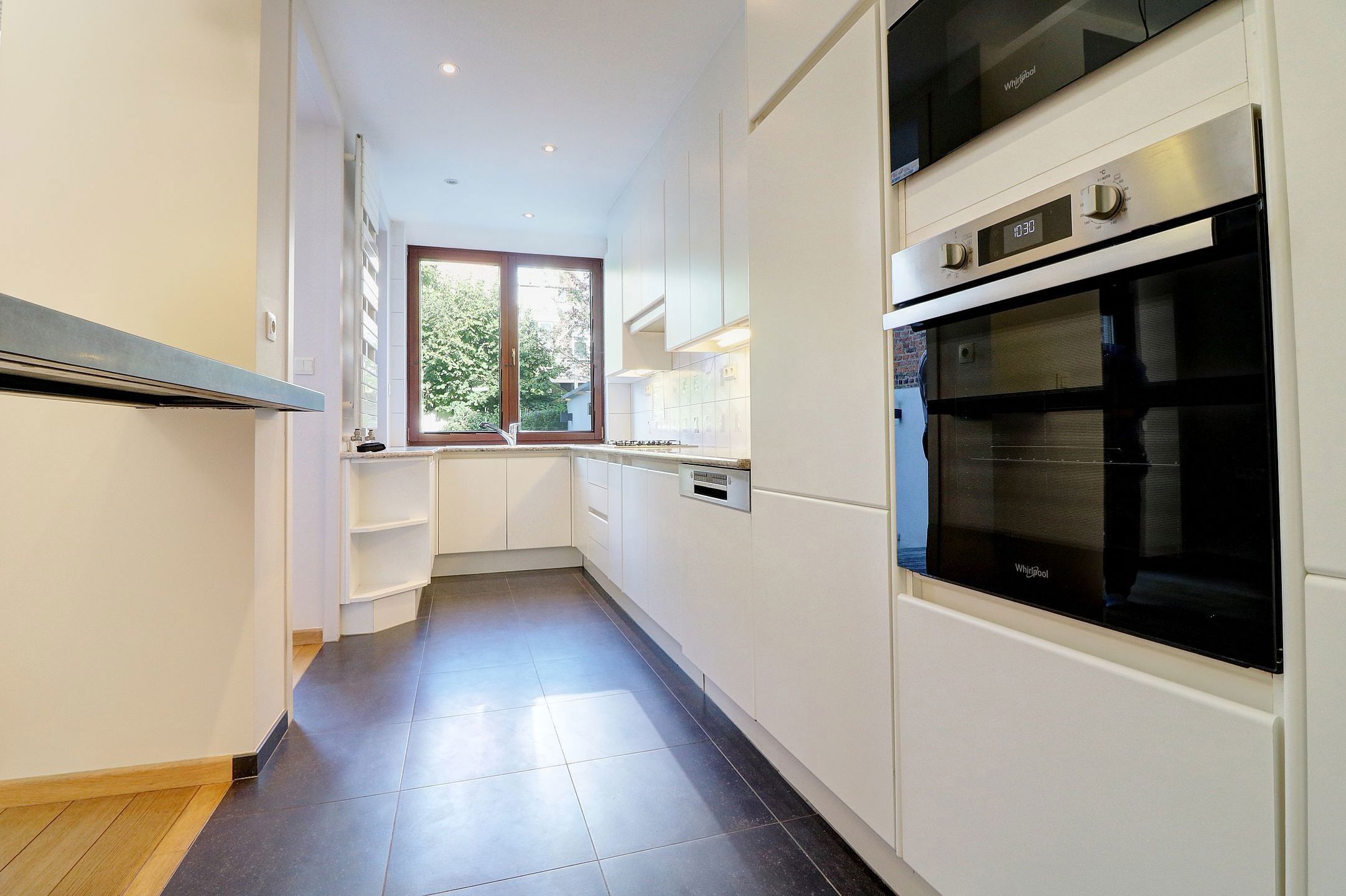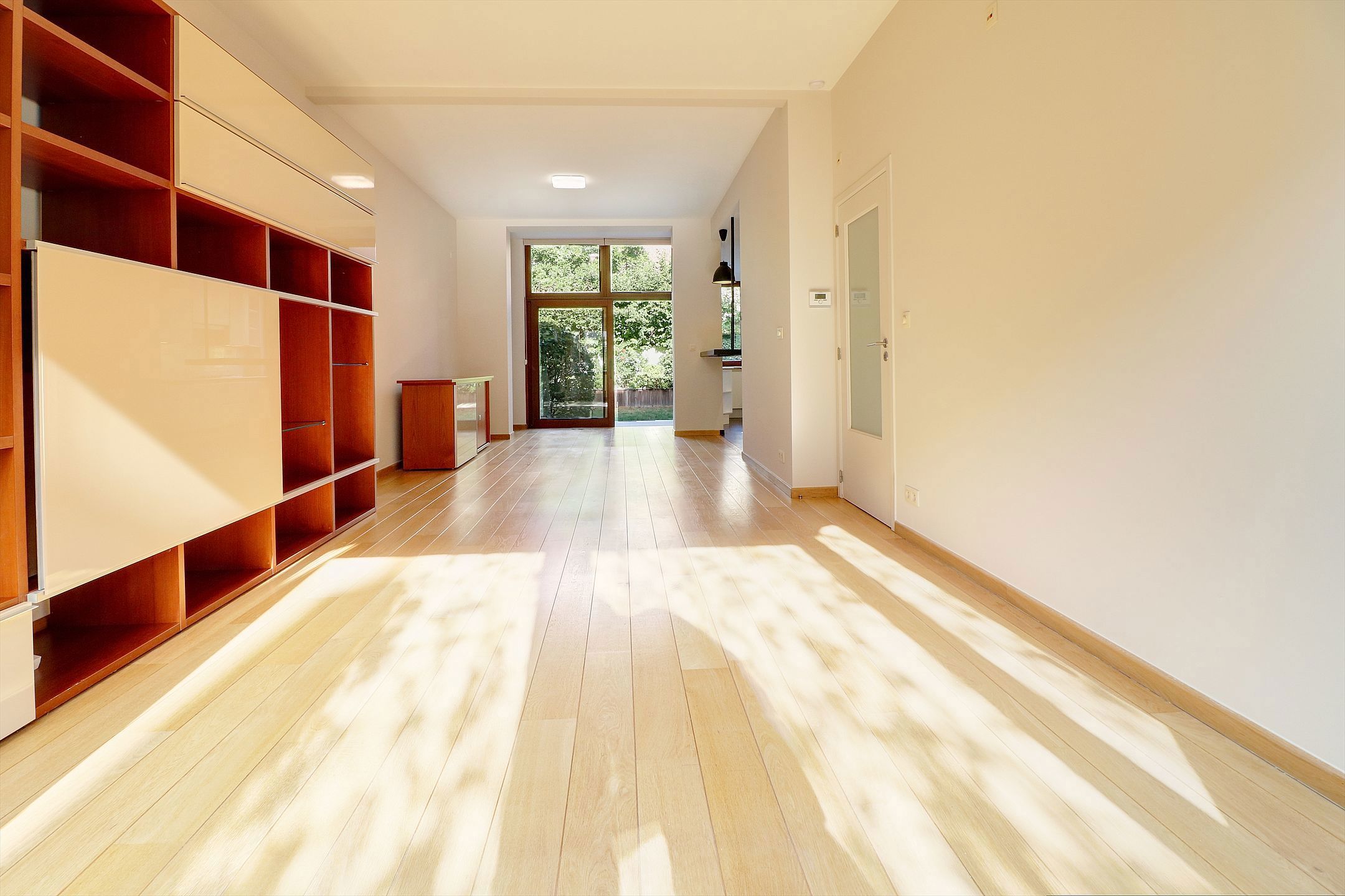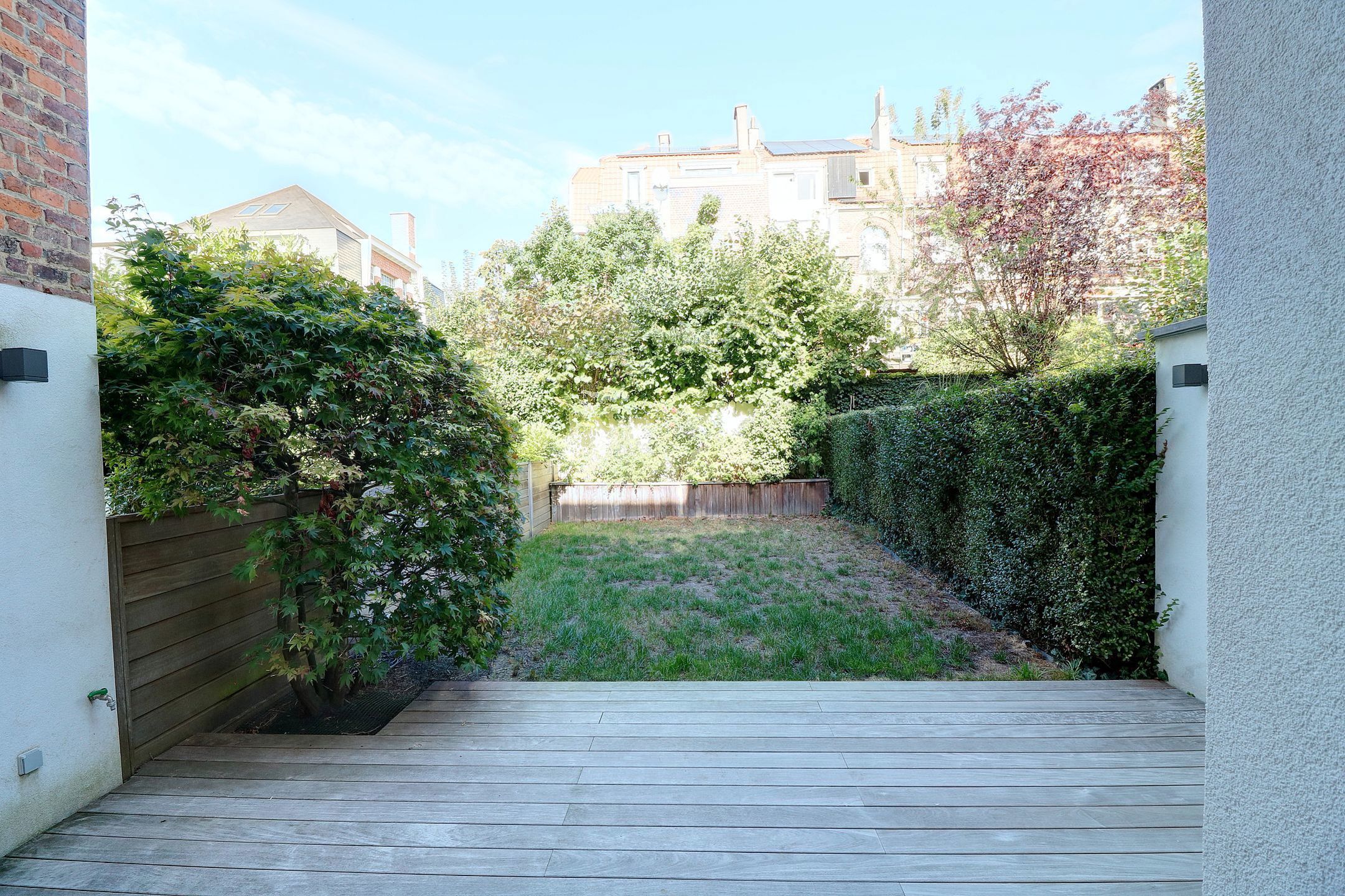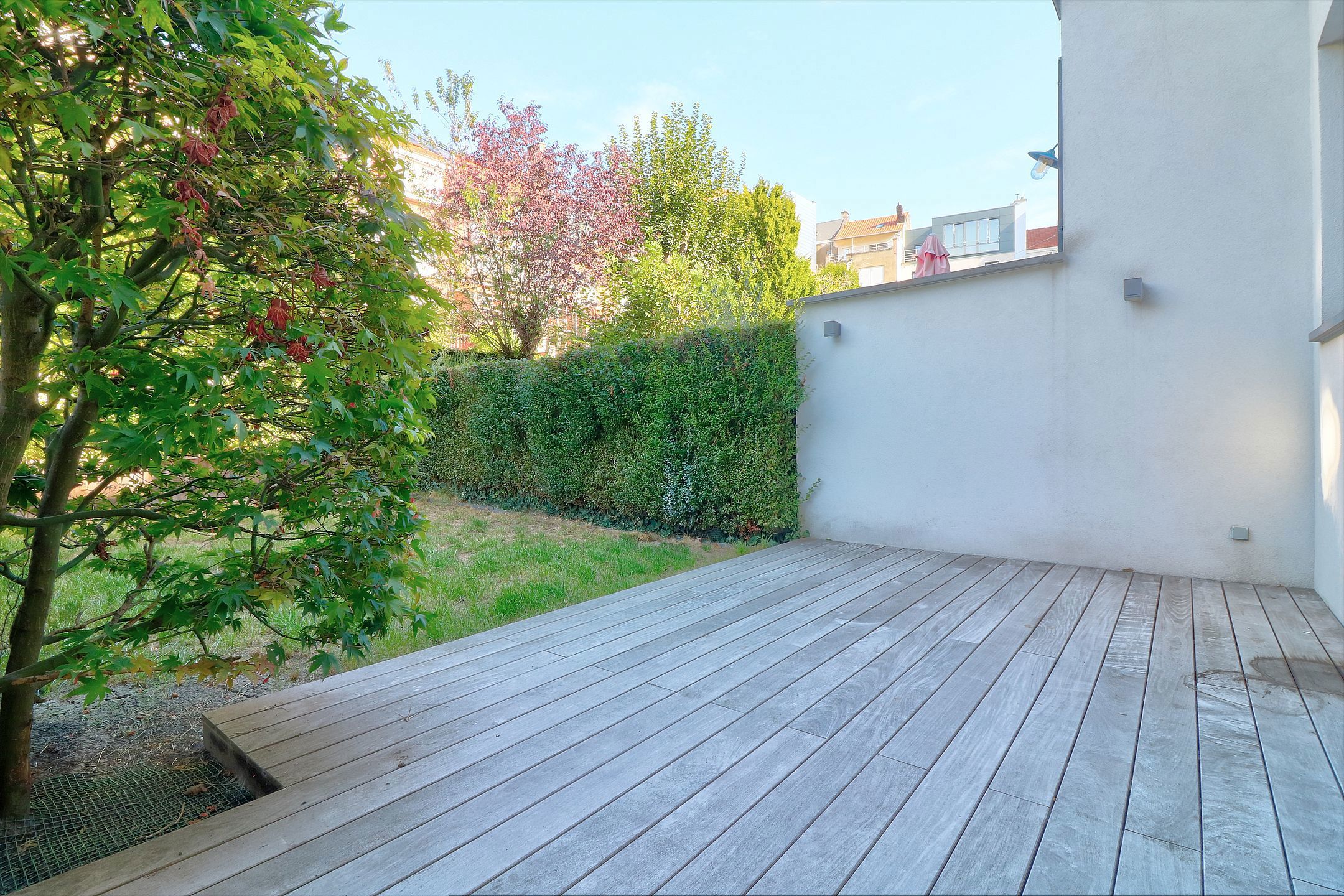 - 1 hall de nuit de ±14m², 2 chambres en parquet de ±18m² chacune, 1 salle de douche carrelée de ±9m² avec une grande douche italienne, 1 WC séparé