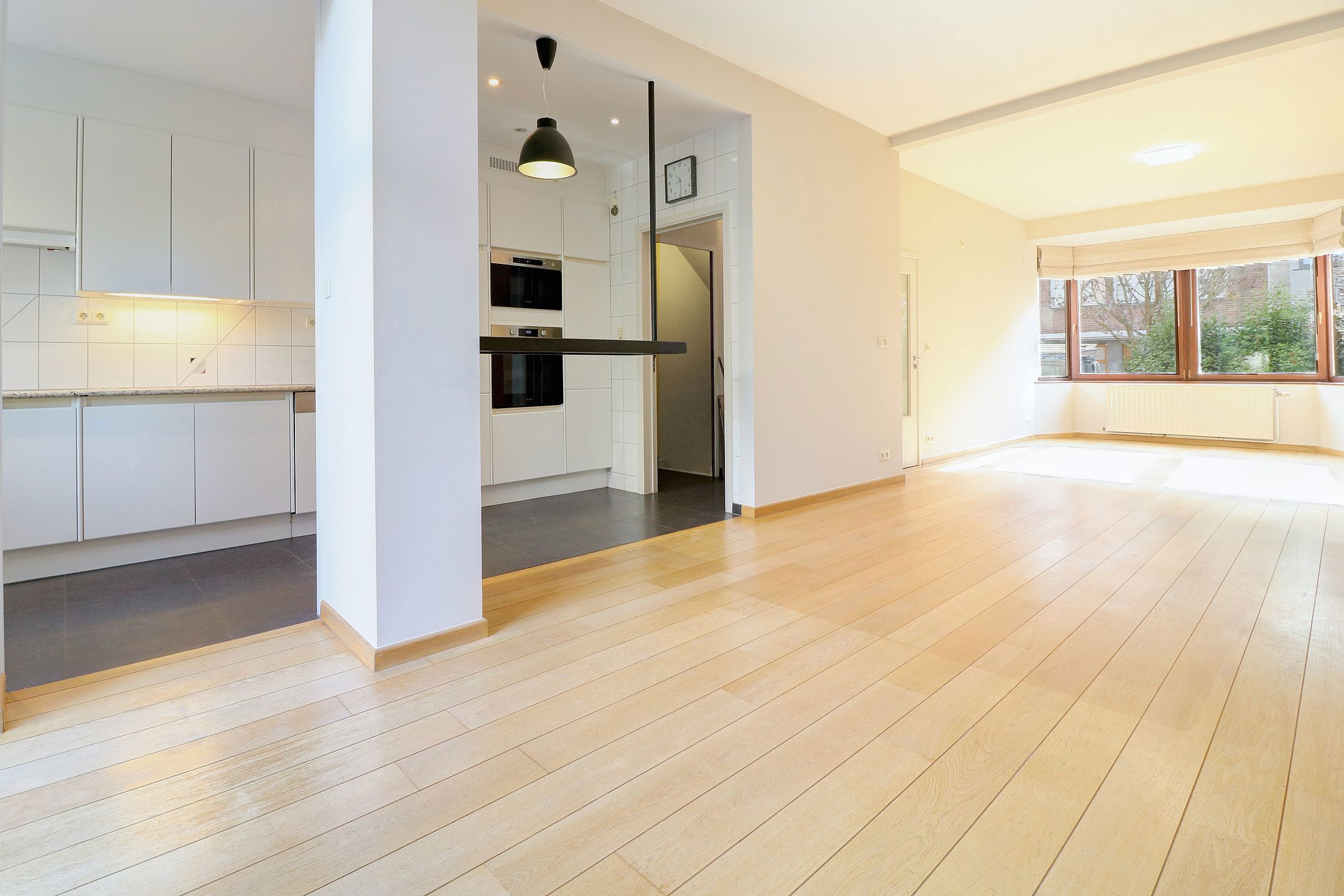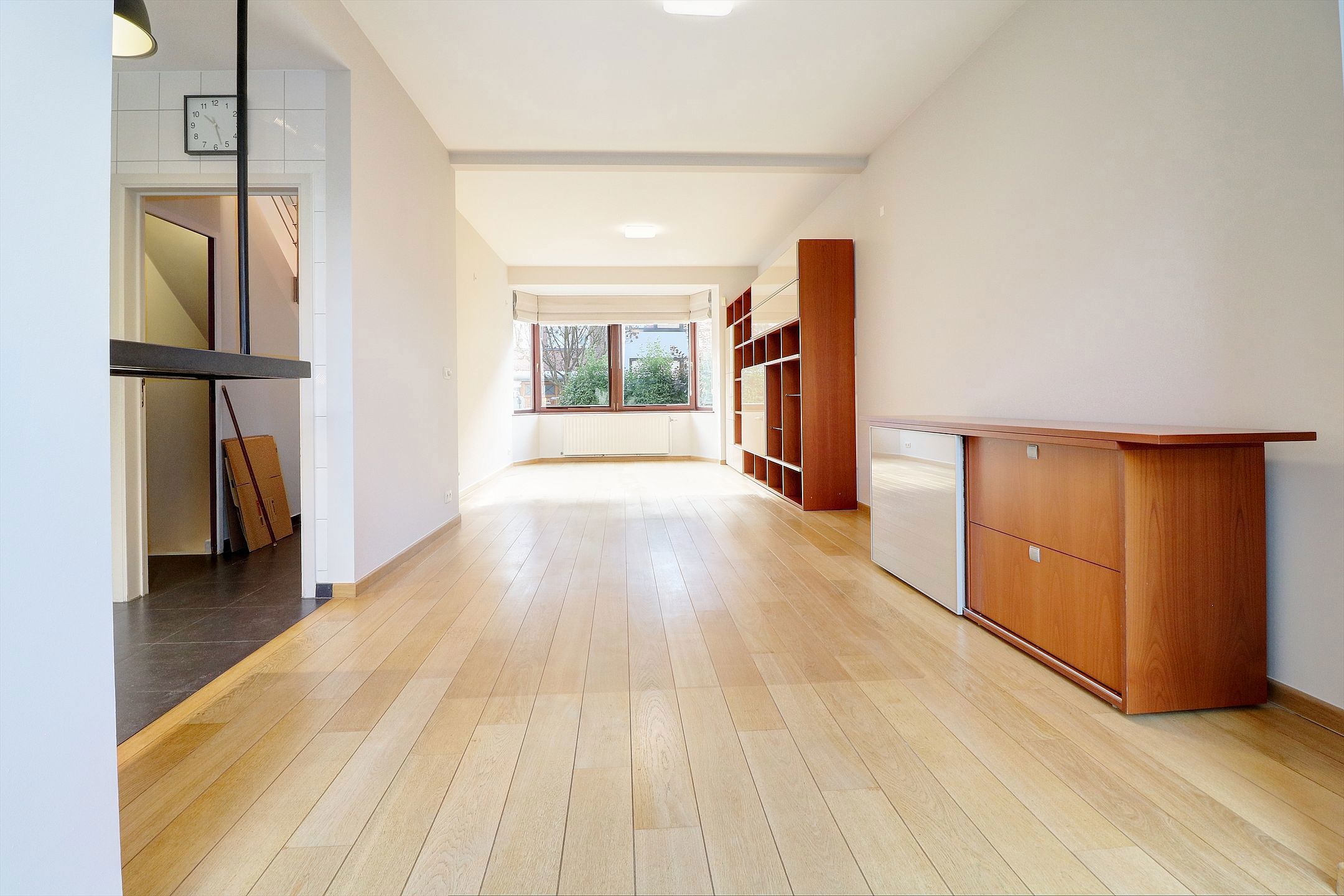 - 1 hall d'entrée de ±10m² , 1 grand salon/salle à manger en parquet de ±34m², 1 cuisine équipée ouverte carrelée de ±10m²