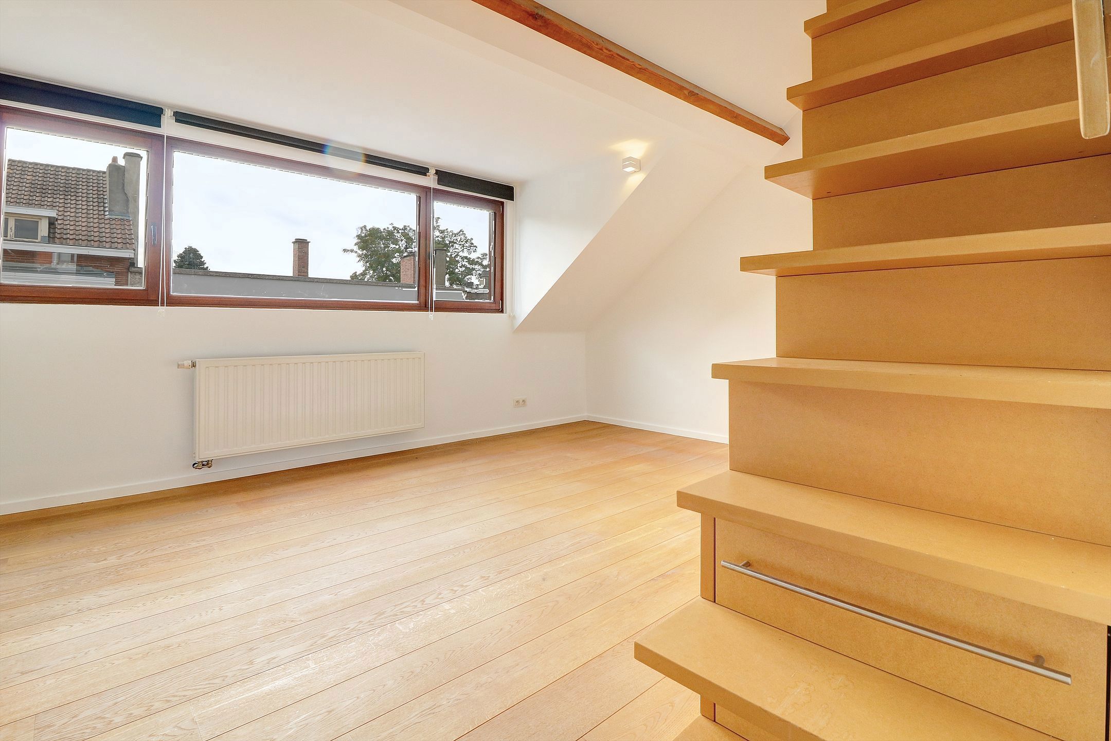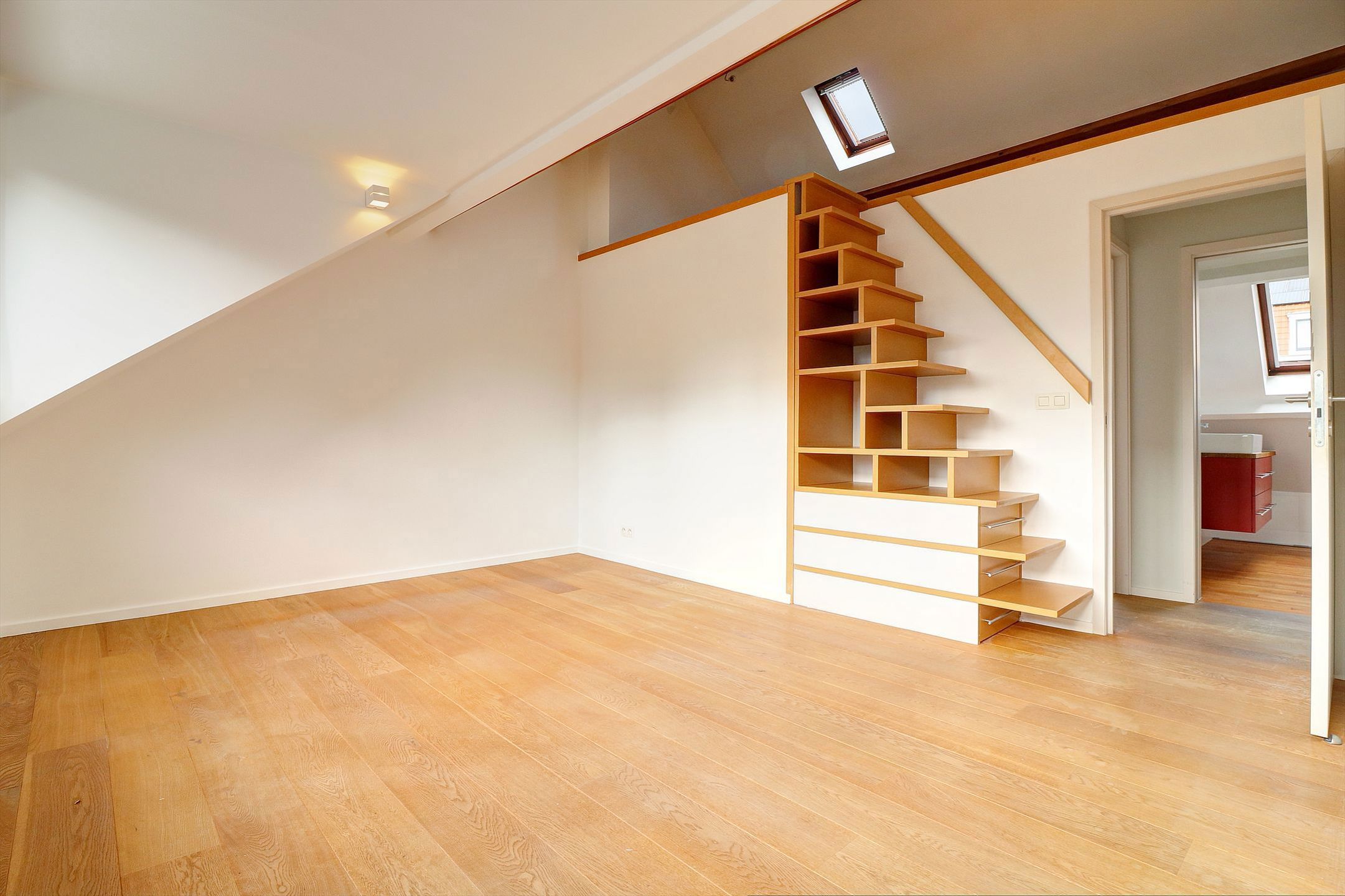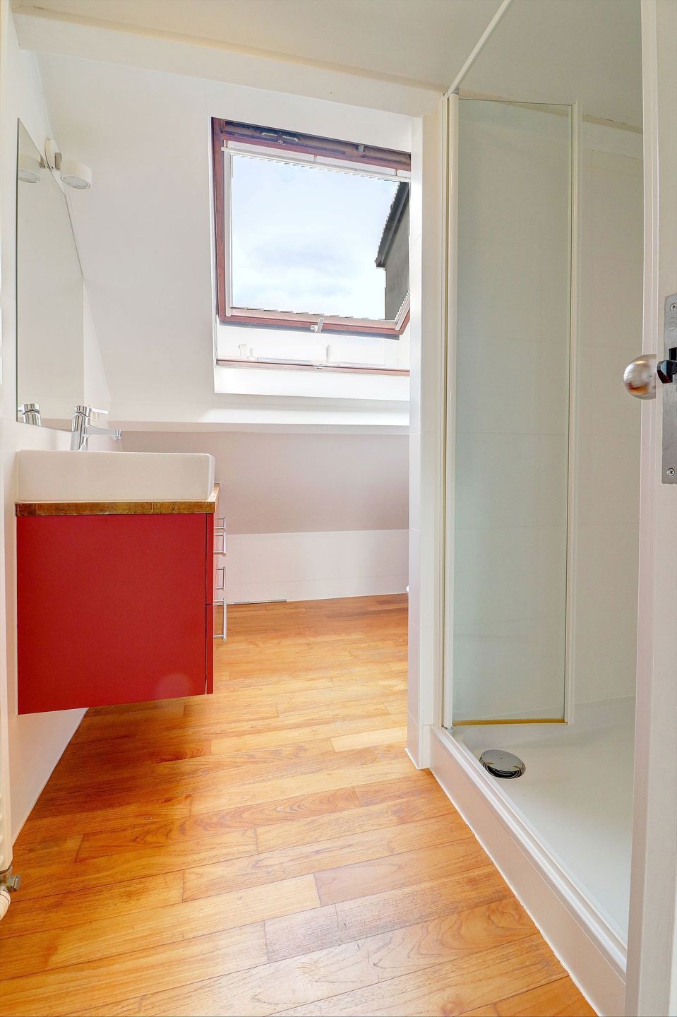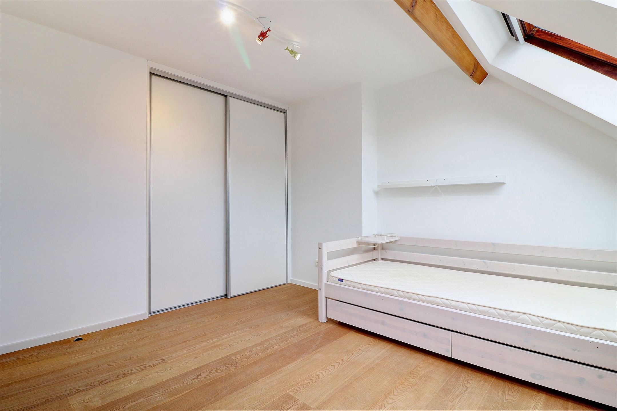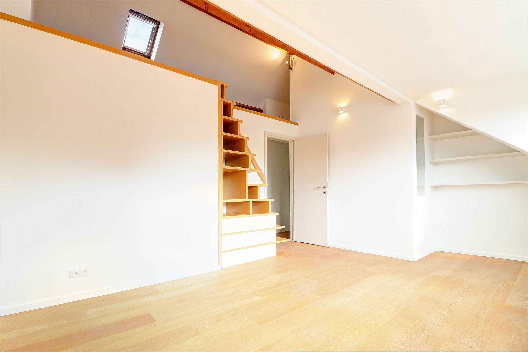 - 1 chambre en parquet de ±20m² avec sa mezzanine de ±12m² (surface au sol), 1 chambre en parquet de ±14m², 1 salle de douche de ±6m² (surface au sol)