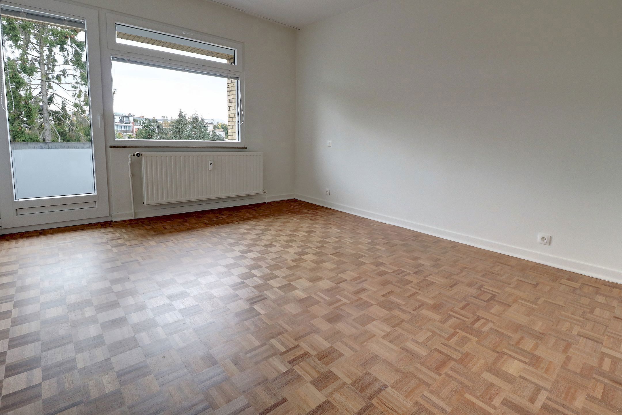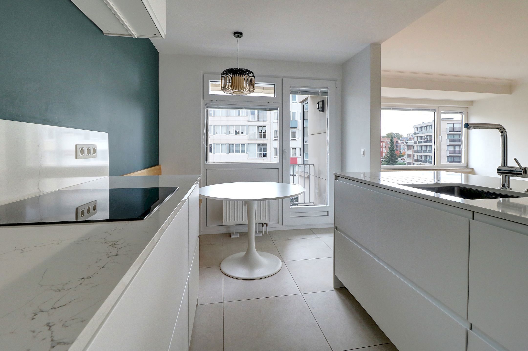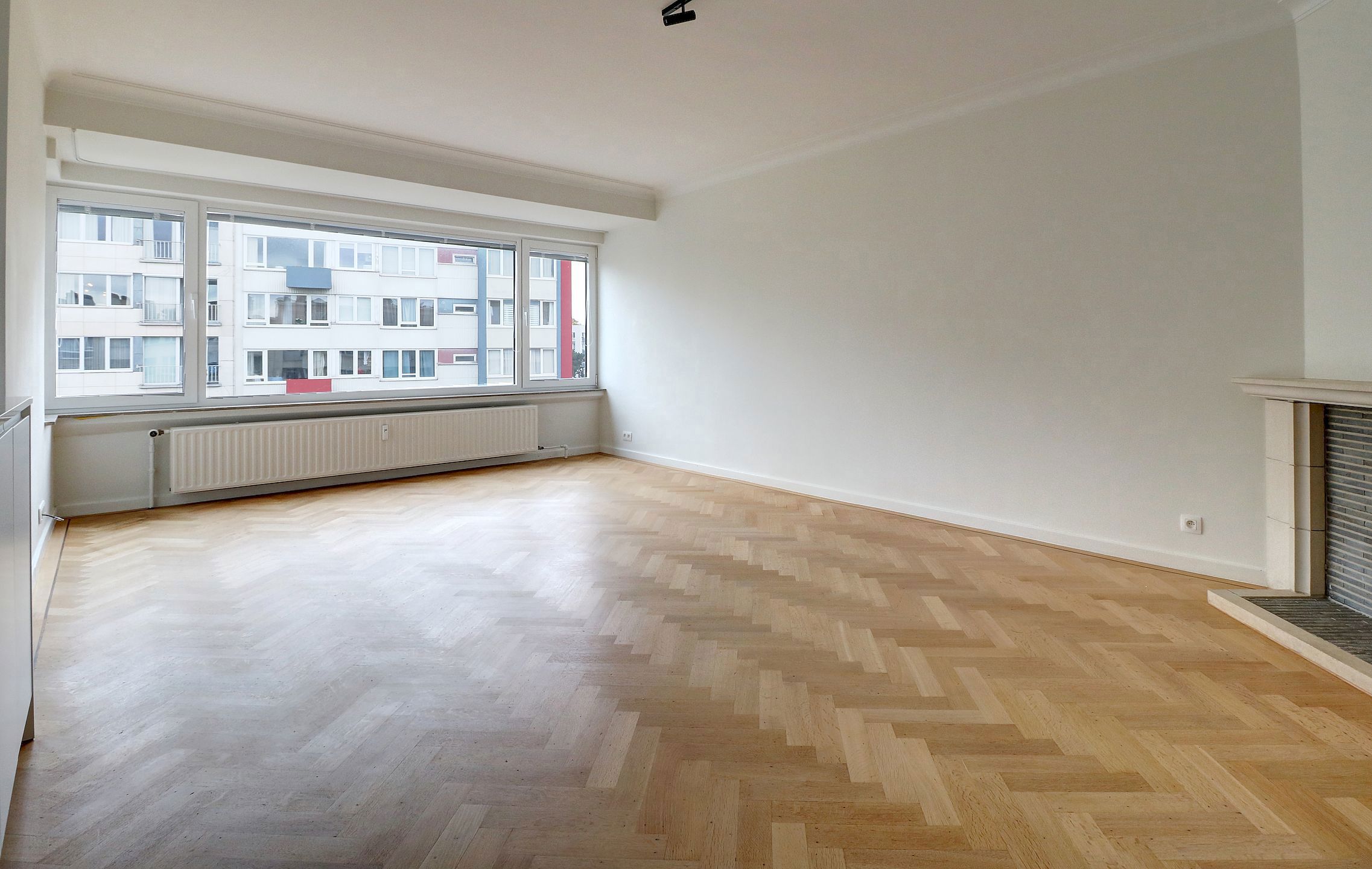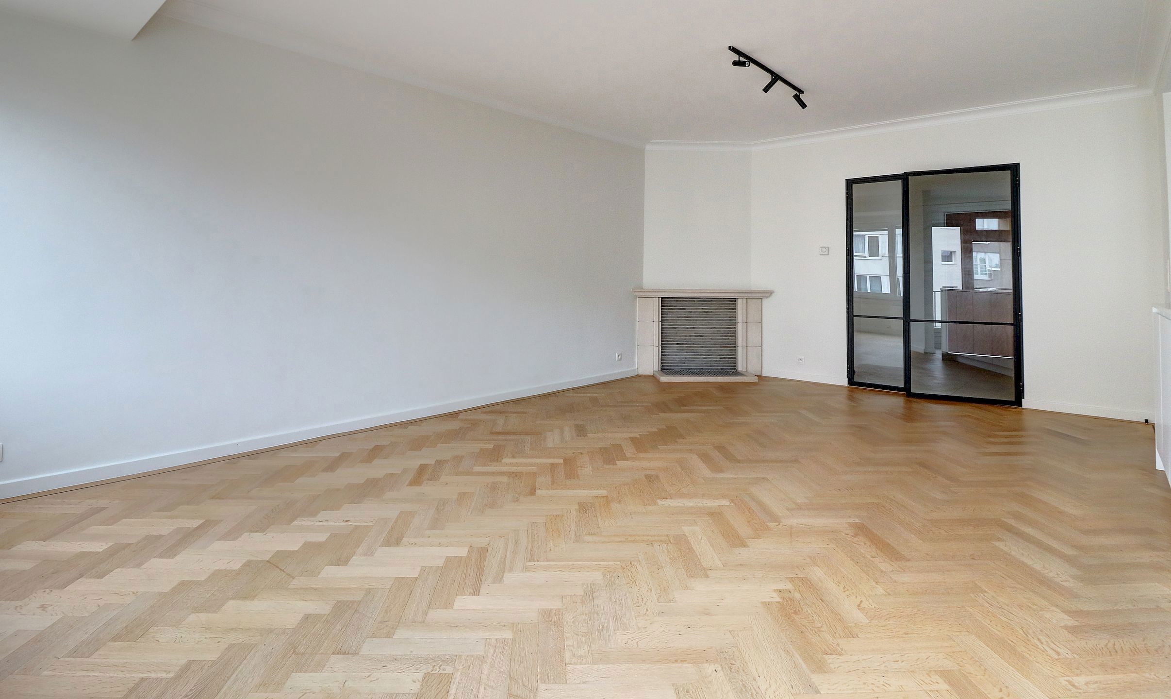 Appartement traversant de ± 96 m² entièrement rénové, situé au 4e étage d’un petit immeuble qui en compte 5 et à proximité immédiate des commerces, transports et écoles :