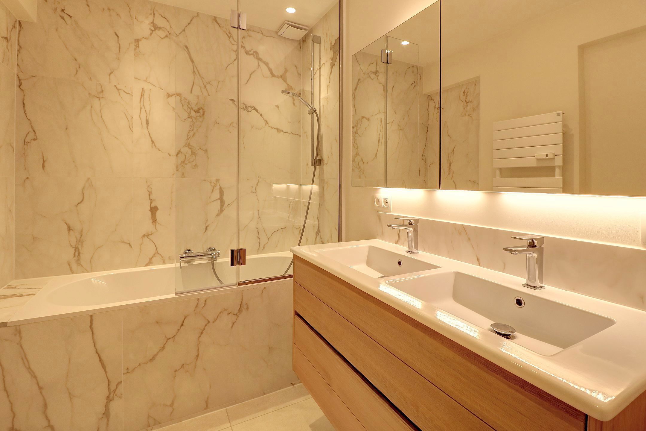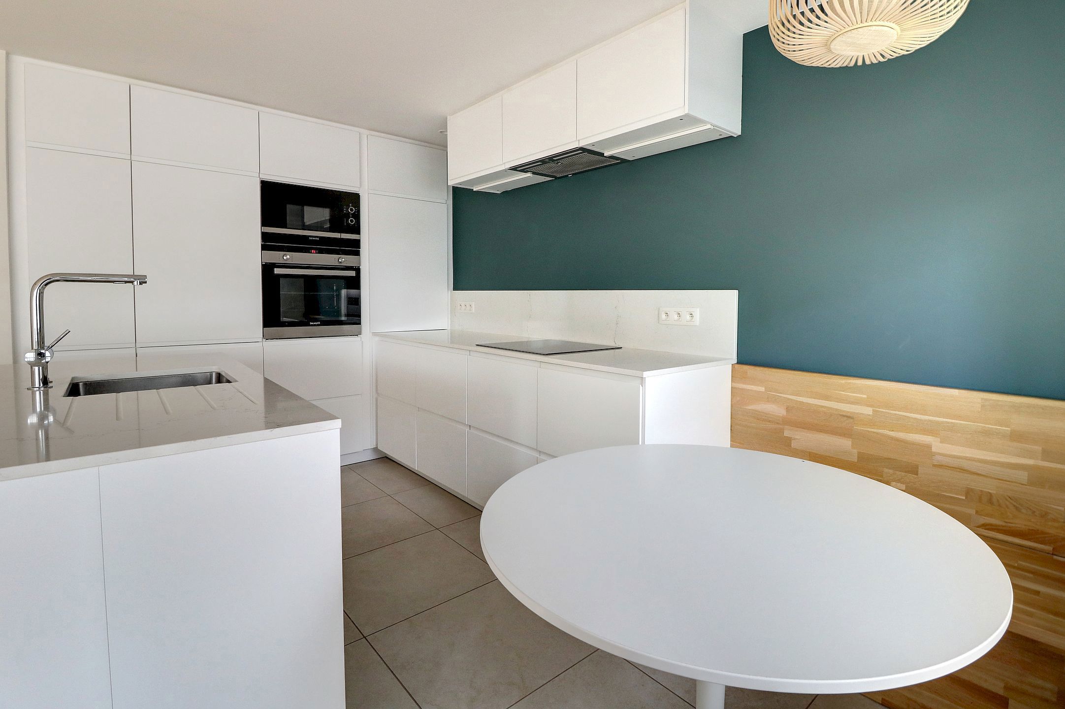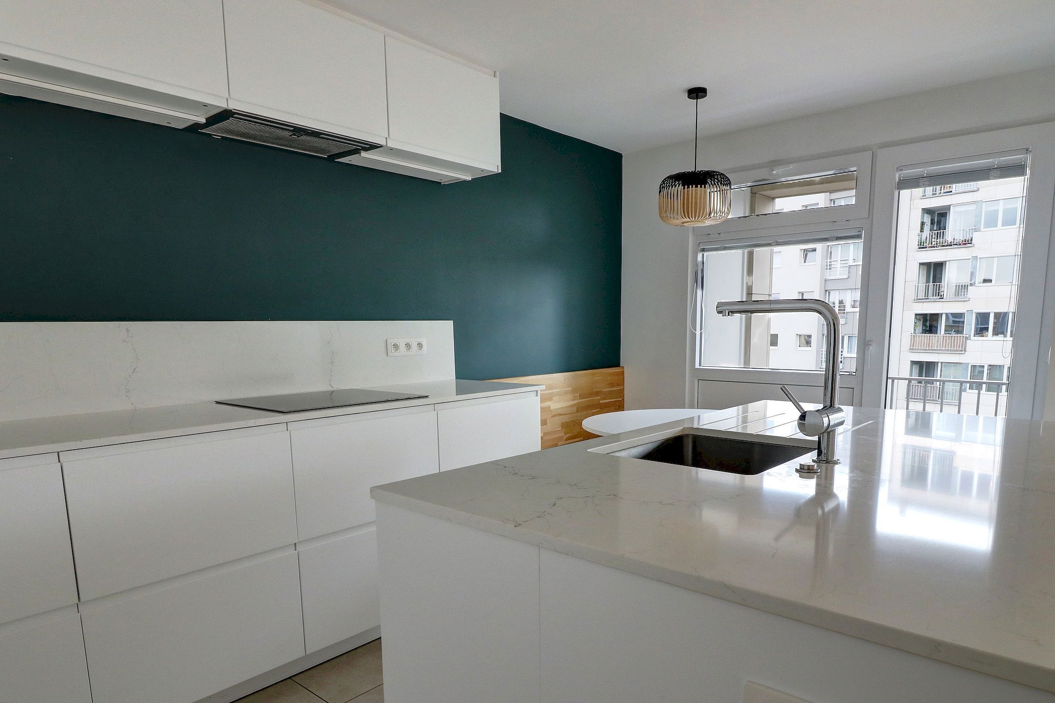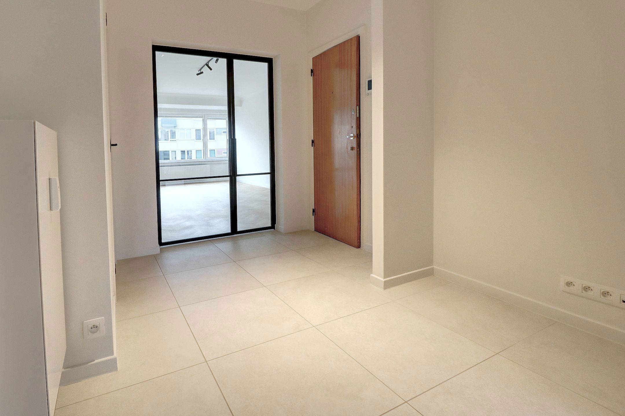 Appartement traversant de ± 96 m² entièrement rénové, situé au 4e étage d’un petit immeuble qui en compte 5 et à proximité immédiate des commerces, transports et écoles :