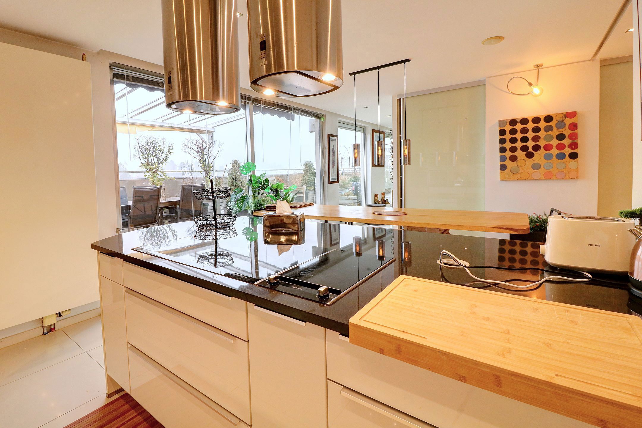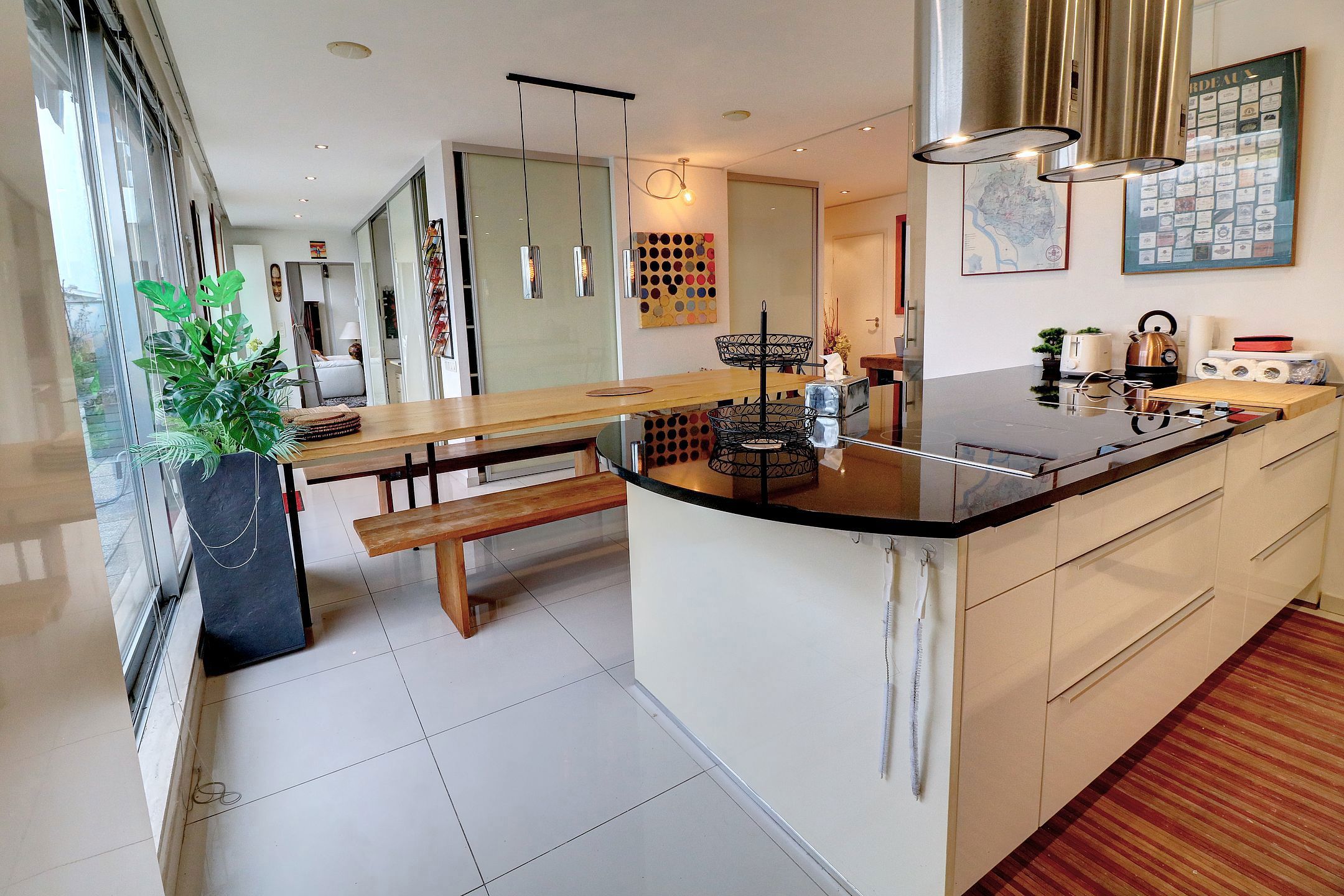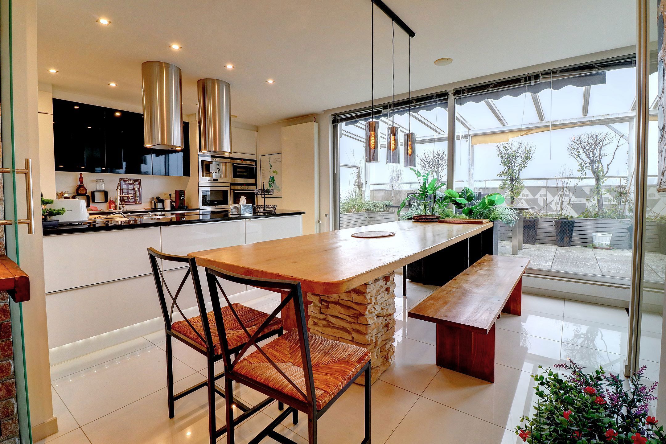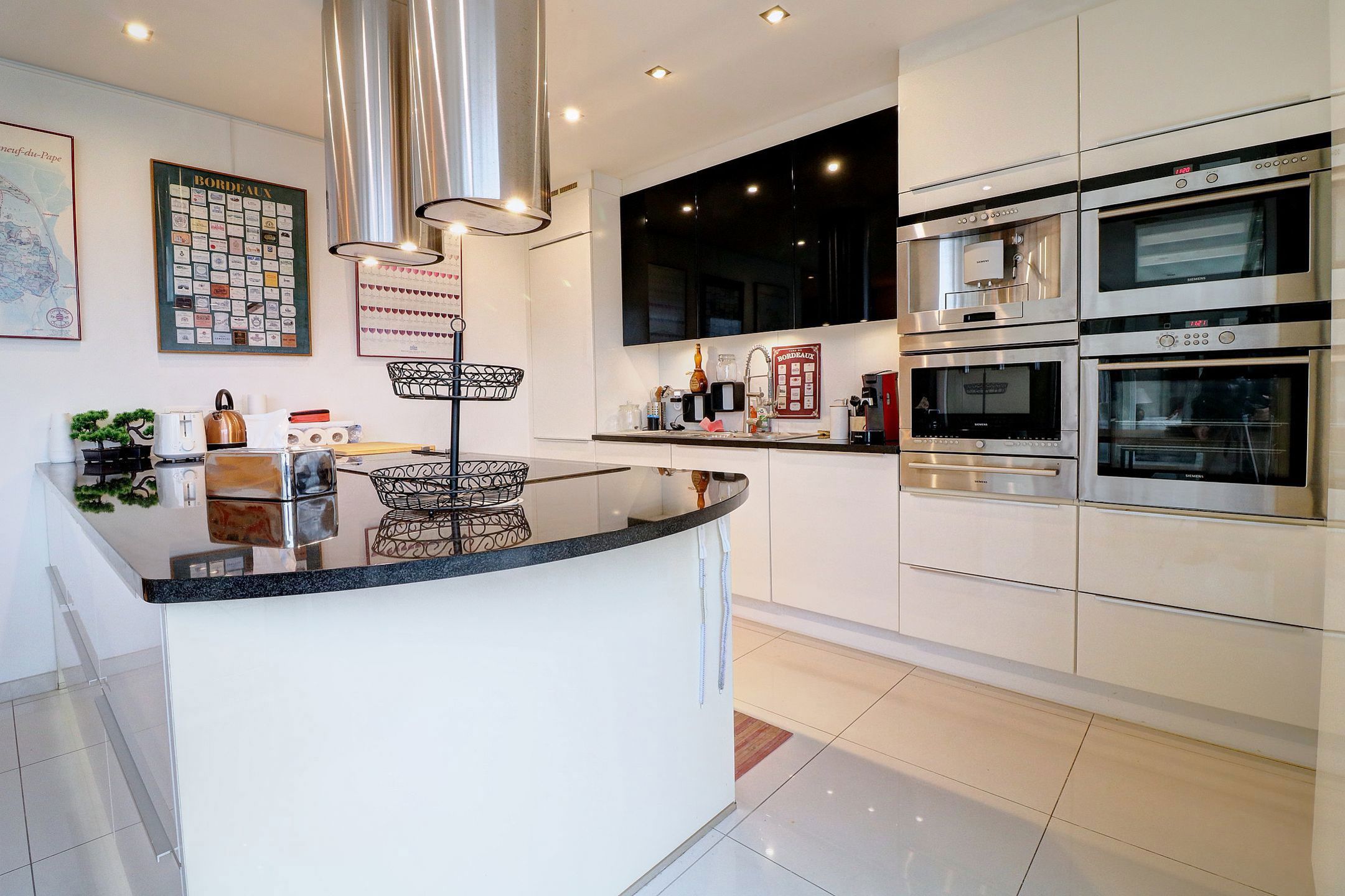 - Een volledig uitgeruste keuken (koelkast, oven, stoomoven, koffiezetapparaat, grill, inductiekookplaat, vaatwasser, micro-wave)